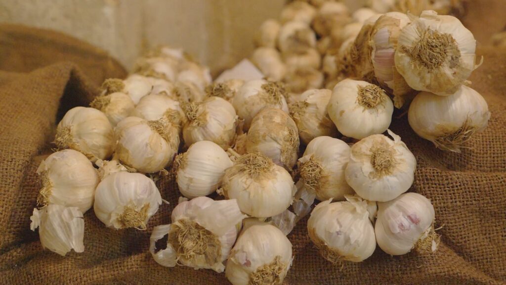 El ajo de Falces es un cultivo muy laborioso cuyas labores se hacen de manera manual. Se caracteriza por ser un ajo de calidad, concentrado, que aporta un gran sabor a las comidas y con buena conservación. Se encuentra en horcas y ristras y los falcesinos lo cultivan y comercializan desde el siglo XVII.
