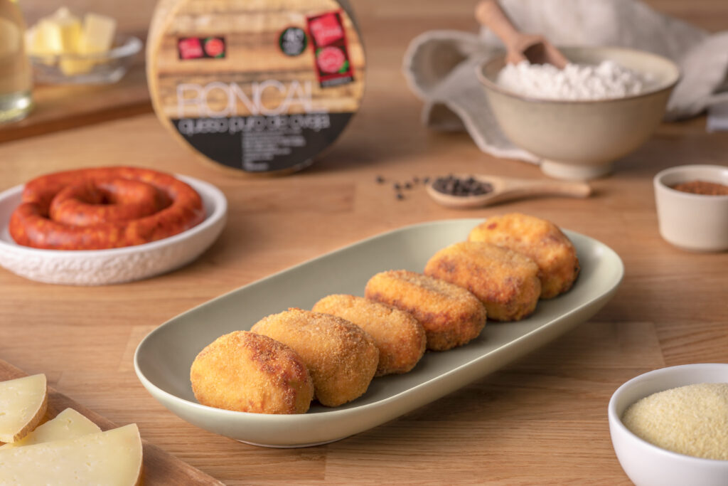Behin solidoa denean, bolak egin, arrautza irabiatu eta ogi birrindu bakoitzeko bi koilara eta paparekin lagunduz. Frijitu kroketak ekilore-olio ugarirekin 180ºC-tan, eta jarri paper xurgatzailearen gainean zerbitzatu aurretik.